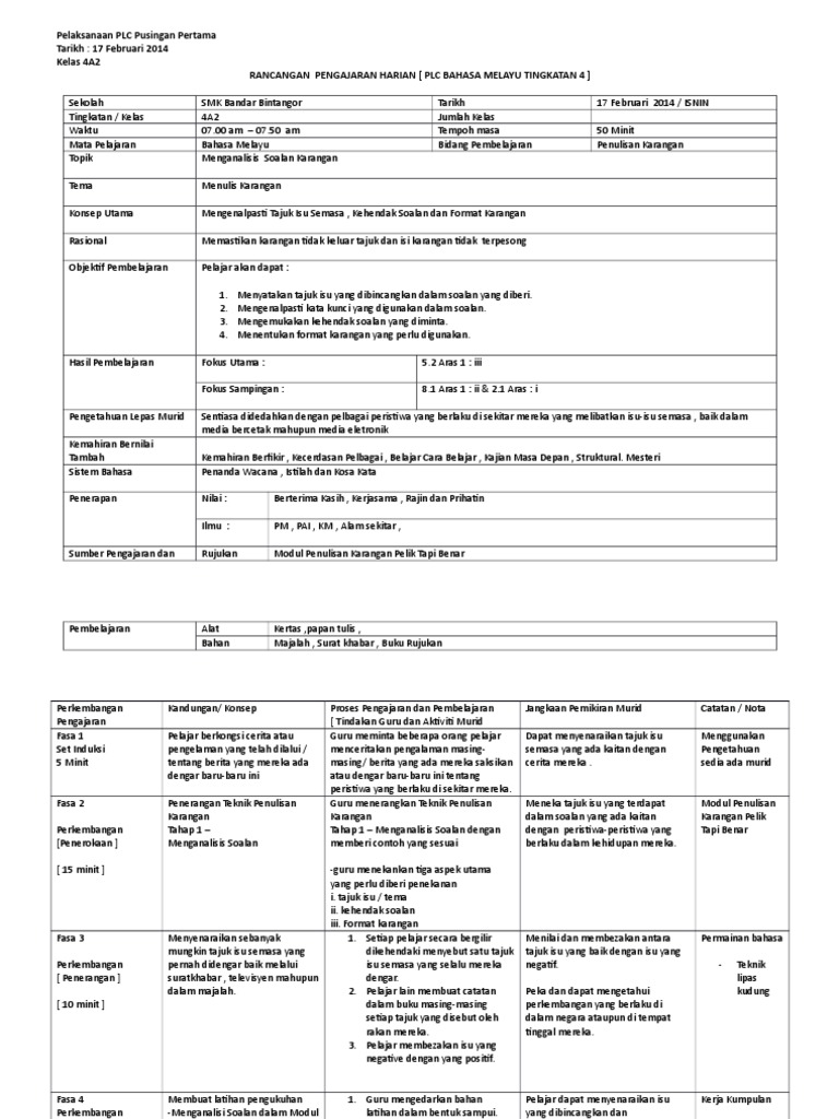Cara ini sememangnya menyenangkan kerja guru. Contoh RPH Bahasa Malaysia Tahun 1 Tarikh Hari. Selain dapat mengolah sinyal digital PLC juga dapat mengolah sinyal analog.